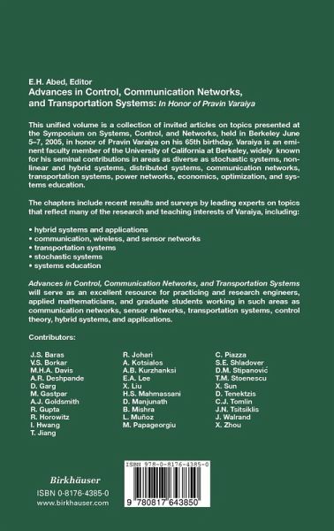 This unified volume is a collection of invited articles on topics presented at the Symposium on Systems, Control, and Networks, held in Berkeley June 5 7, 2005, in honor of Pravin Varaiya on his 65 th birthday. Varaiya is an eminent faculty member of the University of California at Berkeley, widely known for his seminal contributions in areas as diverse as stochastic systems, nonlinear and hybrid systems, distributed systems, communication networks, transportation systems, power networks, economics, optimization, and systems education. The book will serve as an excellent resource for practicing and research engineers, applied mathematicians, and graduate students working in such areas as communication networks, sensor networks, transportation systems, control theory, hybrid systems, and applications.