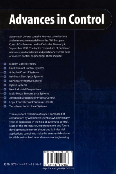 Advances in Control contains keynote contributions and tutorial material from the fifth European Control Conference, held in Germany in September 1999. The topics covered are of particular relevance to all academics and practitioners in the field of modern control engineering. These include:
