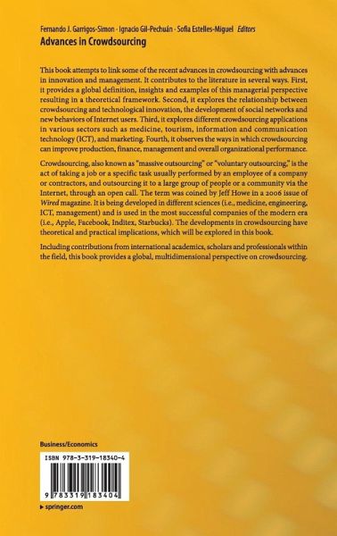 This book attempts to link some of the recent advances in crowdsourcing with advances in innovation and management. It contributes to the literature in several ways. First, it provides a global definition, insights and examples of this managerial perspective resulting in a theoretical framework. Second, it explores the relationship between crowdsourcing and technological innovation, the development of social networks and new behaviors of Internet users. Third, it explores different crowdsourcing applications in various sectors such as medicine, tourism, information and communication technology (ICT), and marketing. Fourth, it observes the ways in which crowdsourcing can improve production, finance, management and overall managerial performance.
