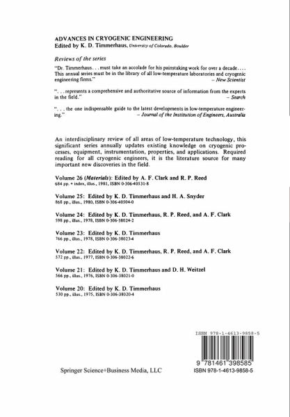 The Cryogenic Engineering Conference celebrated its Silver Anniversary at the 1979 Conference held at Madison, Wisconsin. For many it provided an opportunity to reminisce about the first Cryogenic Engineering Conference convened at the National Bureau of Standards in Boulder, Colorado and also about the many following conferences and advances that had been reported at these conferences. It is difficult to realize that the first Cryogenic Engineering Conference was held before the advent of multilayer insulation, the space age, large-scale LNG Operations and superconductivity applications. The evolution of these activities has been carefully recorded in past volumes of the Advances in Cryogenic Engineering. · Once again, the Cryogenic Engineering Conference is happy to have had the International Cryogenic Materials Conference cohost this meeting at the University of Wisconsin. Collaboration between these two conferences has proven to be mutually beneficial by providing the cryogenic engineer with an in-depth exposure to materials properties, selection, and utilization to complement the exposure to new applications and design concepts. The papers presented at this joint conference as part of the International Cryogenic Materials Conference will be published as Volume 26 of the Advances in Cryogenic Engineering.