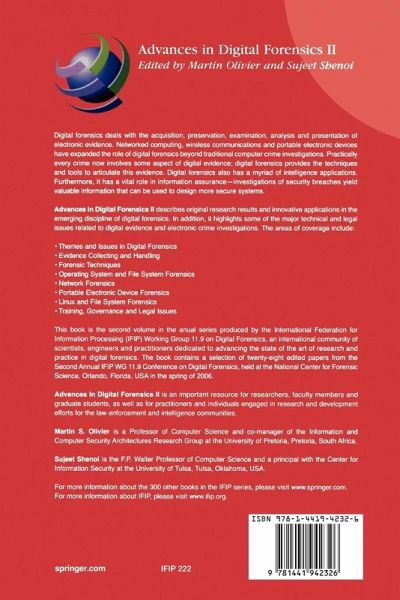 Advances in Digital Forensics II describes original research results and innovative applications in the emerging discipline of digital forensics. In addition, it highlights some of the major technical and legal issues related to digital evidence and electronic crime investigations. The areas of coverage include: