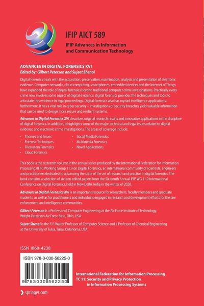 Advances in Digital Forensics XVI describes original research results and innovative applications in the discipline of digital forensics. In addition, it highlights some of the major technical and legal issues related to digital evidence and electronic crimeinvestigations. The areas of coverage include: themes and issues, forensic techniques, filesystem forensics, cloud forensics, social media forensics, multimedia forensics, and novel applications.