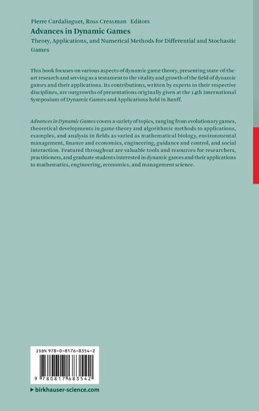 Advances in Dynamic Games covers a variety of topics, ranging from evolutionary games, theoretical developments in game theory and algorithmic methods to applications, examples, and analysis in fields as varied as mathematical biology, environmental management, finance and economics, engineering, guidance and control, and social interaction. Featured throughout are valuable tools and resources for researchers, practitioners, and graduate students interested in dynamic games and their applications to mathematics, engineering, economics, and management science.