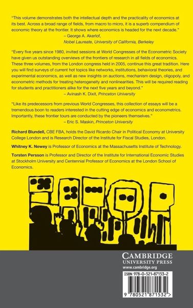 Richard Blundell CBE FBA holds the David Ricardo Chair in Political Economy at University College London and is Research Director of the Institute for Fiscal Studies, London. He is also Director of the Economic and Social Research Council's Centre for the Microeconomic Analysis of Public Policy. Professor Blundell serves as President of the Econometric Society for 2006. Whitney K. Newey is Professor of Economics at the Massachusetts Institute of Technology. A 2000-01 Fellow at the Center for Advanced Study in the Behavioral Sciences in Palo Alto, he is Associate Editor of Econometrica and the Journal of Statistical Planning and Inference, and formerly served as Associate Editor of Econometric Theory. Torsten Persson is Professor and Director of the Institute for International Economic Studies at Stockholm University and Centennial Professor of Economics at the London School of Economics. He was elected a Foreign Honorary Member of the American Academy of Arts and Sciences in 2001 and served as President of the European Economic Association in 2003.