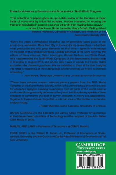 This is the first of three volumes containing edited versions of papers and commentaries presented at invited symposium sessions of the Tenth World Congress of the Econometric Society, held in Shanghai in August 2010. The papers summarize and interpret key developments in economics and econometrics and they discuss future directions for a wide variety of topics, covering both theory and application. Written by the leading specialists in their fields, these volumes provide a unique, accessible survey of progress on the discipline. The first volume primarily addresses economic theory, with specific focuses on nonstandard markets, contracts, decision theory, communication and organizations, epistemics and calibration, and patents.