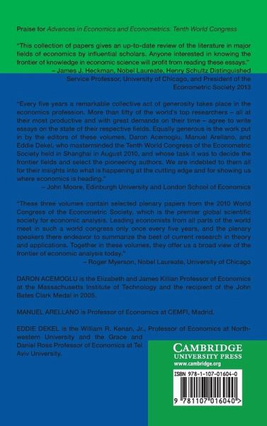 This is the first of three volumes containing edited versions of papers and commentaries presented at invited symposium sessions of the Tenth World Congress of the Econometric Society, held in Shanghai in August 2010. The papers summarize and interpret key developments in economics and econometrics and they discuss future directions for a wide variety of topics, covering both theory and application. Written by the leading specialists in their fields, these volumes provide a unique, accessible survey of progress on the discipline. The first volume primarily addresses economic theory, with specific focuses on nonstandard markets, contracts, decision theory, communication and organizations, epistemics and calibration, and patents.