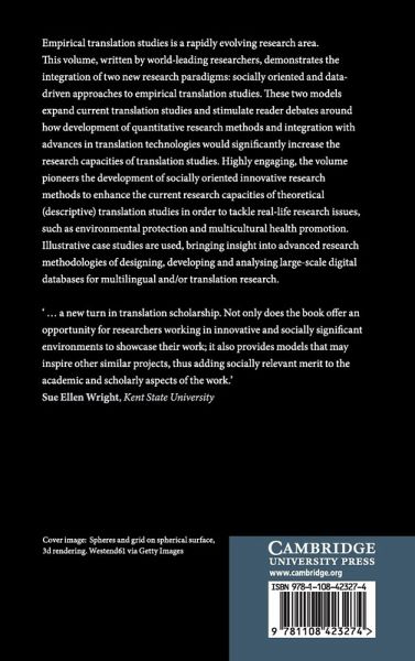 Preface Meng Ji and Michael Oakes; 1. Advances in empirical translation studies Meng Ji; 2. Development of empirical multilingual analytical instruments Meng Ji; 3. Statistics for corpus-based and corpus-driven approaches to ETS Michael Oakes; 4. The evolving treatment of semantics in machine translation Mark Seligman; 5. Translating and disseminating World Health Organization drinking-water quality guidelines in Japan Meng Ji, Glenn Hook and Fukumoto Fumiyo; 6. Developing multilingual automatic semantic annotation systems Laura Löfberg and Paul Rayson; 7. Leveraging large Corpora for translation using the sketch engine Sara Moze and Simon Krek; 8. Developing computerised health translation readability evaluation tools Meng Ji and Zhaoming Gao; 9. Reordering techniques in Japanese and English machine translation Masaaki Nagata; 10. Audiovisual translation in mercurial mediascapes Jorge Diaz-Cintas; 11. Exploiting data-driven hybrid approaches to translation in the EXPERT project Constantin Orasa, Carla Escartin, Lianet Sepulveda Torres and Eduard Barbu; 12. Advances in speech-to-speech translation technologies Mark Seligman and Alex Waibel; 13. Challenges and opportunities of empirical translation studies Meng Ji and Michael Oakes.