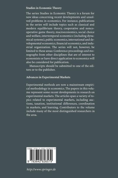 Experimental methods are now a mainstream empirical methodology in economics. The papers in this volume represent some recent developments in research on experimental markets. The articles span a variety of topics related to experimental markets, including auctions, taxation, institutional differences, coordination in markets, and learning. Contributors to the volume include many of the most distinguished researchers in the area.