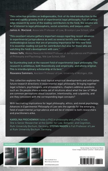 Only recently have philosophers and psychologists begun to consider empirical research methods to inform questions and debates in legal philosophy. With the field ripe for further experimental inquiry, this collection explores the most topical empirical developments and anticipates future research directions. Bringing together legal scholars, psychologists, and philosophers, chapters address questions such as: Do people share a stable set of intuitions about what the law is? What are common perceptions about causation, intentionality, and culpability, and are they consistent with the corresponding legal concepts? To what extent can experimental research methods advance theoretical debates in legal philosophy about the nature of law? With fascinating implications for legal philosophy, ethics, and moral psychology, Advances in Experimental Philosophy of Law sets the agenda for the emerging field of experimental jurisprudence and will be of interest to both researchers and practitioners alike.