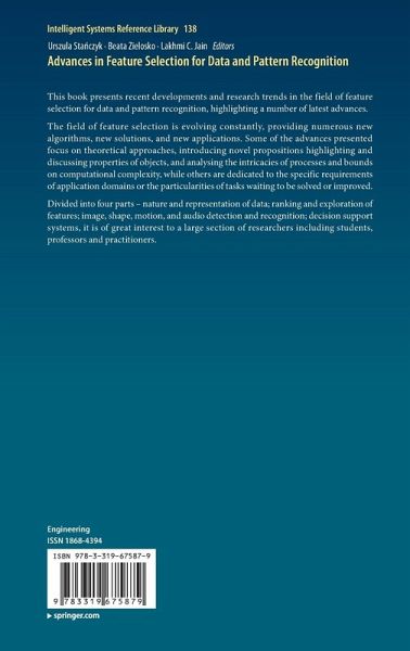 This book presents recent developments and research trends in the field of feature selection for data and pattern recognition, highlighting a number of latest advances.