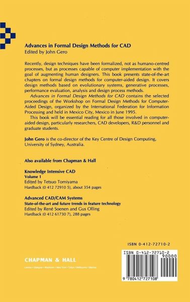 Designing is one of the most significant of human acts. Surprisingly, given that designing has been occurring for many millenia, our understanding of the processes of designing is remarkably limited. Recently, design methods have been formalised not as humano-centred processes but as processes capable of computer implementation with the goal of augmenting human designers. This volume contains contributions which cover design methods based on evolutionary systems, generative processes, evaluation methods and analysis methods. It presents the state of the art in formal design methods for computer aided design.