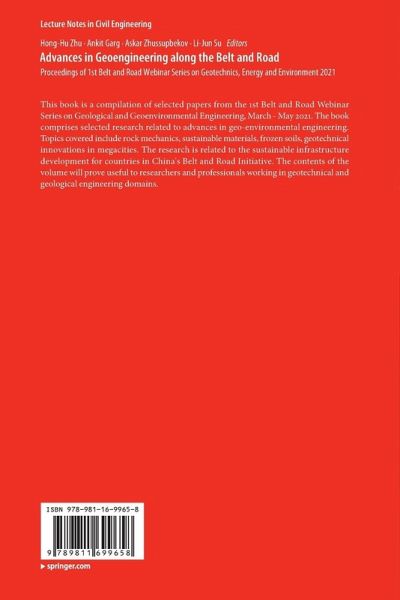 This book is a compilation of selected papers from the 1st Belt and Road Webinar Series on Geotechnics, Energy and Environment, March - May 2021. The book comprises selected research related to advances in geo-environmental engineering. Topics covered include rock mechanics, sustainable materials, frozen soils, geotechnical innovations in megacities. The research is related to the sustainable infrastructure development for countries in China's Belt and Road Initiative. The contents of the volume will prove useful to researchers and professionals working in geotechnical and geological engineering domains.