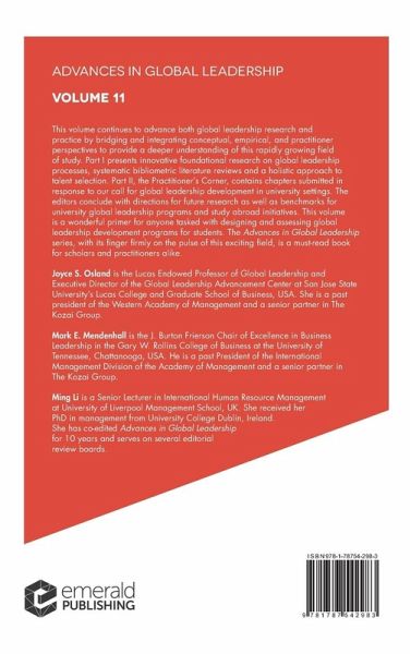 This volume of Advances in Global Leadership updates researchers and practitioners on the state of the field and research gaps. Part 1 presents new empirical studies; Part II features papers on global leadership development programs offered by universities. Contributors range from well-known voices to new scholars with fresh perspectives.