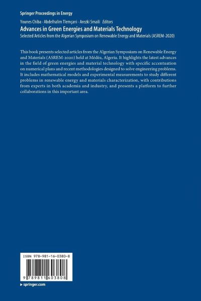 Selected Articles from the Algerian Symposium on Renewable Energy and Materials (ASREM-2020) Herausgegeben:Chiba, Younes; Tlemçani, Abdelhalim; Smaili, Arezki