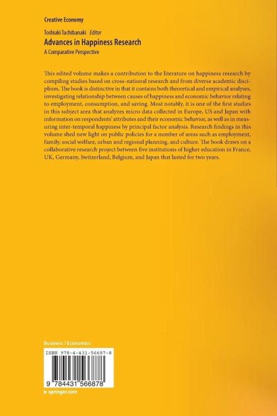 This edited volume makes a contribution to the literature on happiness research by compiling studies based on cross-national research and from diverse academic disciplines. The book is distinctive in that it contains both theoretical and empirical analyses, investigating relationship between causes of happiness and economic behavior relating to employment, consumption, and saving. Most notably, it is one of the first studies in this subject area that analyzes micro data collected in Europe, US and Japan with information on respondents' attributes and their economic behavior, as well as in measuring inter-temporal happiness by principal factor analysis. Research findings in this volume shed new light on public policies for a number of areas such as employment, family, social welfare, urban and regional planning, and culture. The book draws on a collaborative research project between five institutions of higher education in France, UK, Germany, Switzerland, Belgium, and Japan that lasted for two years.