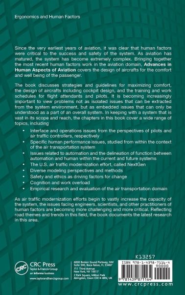 With contrbutions from experts, this book covers the design of aircrafts for the comfort and well being of the passenger. It includes strategies and guidelines for maximizing comfort, the design of aircrafts including cockpit design, and the training and work schedules for flight attendants and pilots.