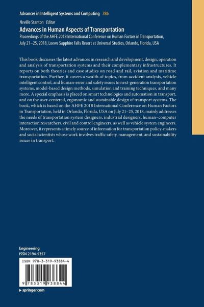 This book discusses the latest advances in research and development, design, operation and analysis of transportation systems and their complementary infrastructures. It reports on both theories and case studies on road and rail, aviation and maritime transportation. Further, it covers a wealth of topics, from accident analysis, vehicle intelligent control, and human-error and safety issues to next-generation transportation systems, model-based design methods, simulation and training techniques, and many more. A special emphasis is placed on smart technologies and automation in transport, and on the user-centered, ergonomic and sustainable design of transport systems. The book, which is based on the AHFE 2018 International Conference on Human Factors in Transportation, held in Orlando, Florida, USA on July 21-25, 2018, mainly addresses the needs of transportation system designers, industrial designers, human-computer interaction researchers, civil and control engineers, as well as vehicle system engineers. Moreover, it represents a timely source of information for transportation policy-makers and social scientists whose work involves traffic safety, management, and sustainability issues in transport.