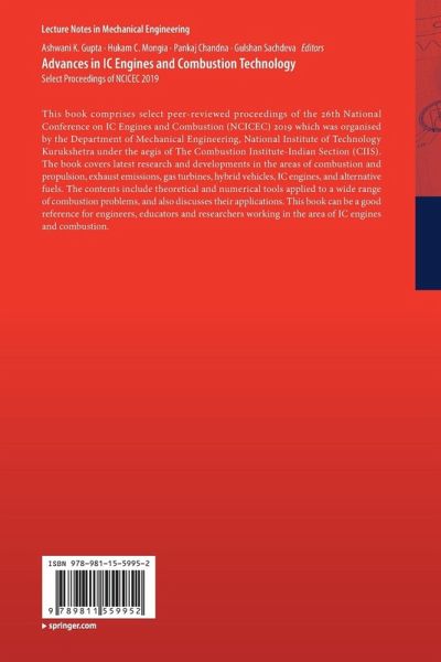 This book comprises select peer-reviewed proceedings of the 26th National Conference on IC Engines and Combustion (NCICEC) 2019 which was organised by the Department of Mechanical Engineering, National Institute of Technology Kurukshetra under the aegis of The Combustion Institute-Indian Section (CIIS). The book covers latest research and developments in the areas of combustion and propulsion, exhaust emissions, gas turbines, hybrid vehicles, IC engines, and alternative fuels. The contents include theoretical and numerical tools applied to a wide range of combustion problems, and also discusses their applications. This book can be a good reference for engineers, educators and researchers working in the area of IC engines and combustion.