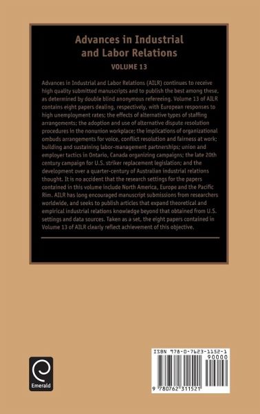 Contains eight papers dealing with European responses to high unemployment rates; the effects of alternative types of staffing arrangements; the adoption and use of alternative dispute resolution procedures in the nonunion workplace; building and sustaining labor-management partnerships; and other aspects.