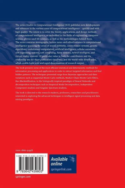 The book presents some of the most efficient statistical and deterministic methods for information processing and applications in order to extract targeted information and find hidden patterns. The techniques presented range from Bayesian approaches and their variations such as sequential Monte Carlo methods, Markov Chain Monte Carlo filters, Rao Blackwellization, to the biologically inspired paradigm of Neural Networks and decomposition techniques such as Empirical Mode Decomposition, Independent Component Analysis and Singular Spectrum Analysis.