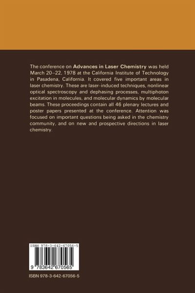 I. Laser- Induced Chemistry.- Internal Energy Transfer in Isolated Molecules: Ergodic and Nonergodic Behavior.- Spectroscopy and Relaxation of Vibrationally Excited HCO Radicals.- Dye Laser-Induced Photochemistry.- Chemical Applications of Lasers.- A Direct Measure of the Partitioning of Electronic, Vibrational, Rotational, and Translational Energies in Unimolecular Processes.- Laser Synthetic Chemistry and Laser Photogeneration of Catalysis.- Vibrational Excitation in the Products of S-Tetrazine Photolysis.- Deuterium Enrichment by CW CO2 Laser-Induced Vibrational Photochemistry.- IR Photodissociation of Fluorinated Ethanes and Ethylenes: Collisional Effects in the Multiple Photon Absorption Process.- II. Picosecond Processes and Techniques.- Vibrational and Electronic Relaxation in Moderate Sized Systems.- Picosecond Emission Spectroscopy with An Ultraviolet Sensitive Streak Camera.- Picosecond Studies of Some Ultrafast Events in Bacterial Photosynthesis.- Advances in Subpicosecond Spectroscopic Techniques.- Picosecond Dynamics of the Formation of Charge Transfer States in 9,9?-Bianthryl.- Fluorescence Spectroscopy of Ultrashort-Lived States of Aromatic Compounds.- Picosecond Studies of Unimolecular Processes.- Picosecond Chromodynamics of Electrons in Fluids.- First Observation of the Formation Process of Squid Hypsorhodopsin by Picosecond Spectroscopy.- Picosecond Laser Studies of Stil bene Laser Dye.- III. Non-Linear Optical Spectroscopy and Dephasing Processes.- Theory of Optical Dephasing in Condensed Phases.- The Origin of Vibrational Dephasing in Liquids and Solids.- Thermal Lensing Spectroscopy in the Condensed Phase.- The Use of Monochromatically Excited Resonant Light Scattering as a Probe of Ultra Short T1 and T2 Type Relaxation Processes in ExcitedElectronic States.- Molecular Mechanisms for Dephasing: Toward a Unified Treatment of Gases, Solids, and Liquids.- Molecular Spectroscopic Aspects of the Third Order Susceptibility.- Coherent Anti-Stokes Resonance Raman Spectra of Highly Fluorescent Compounds.- Applications of Coherent Anti-Stokes Raman Spectroscopy at NRL.- Absolute Fluorescence Yields by Thermal Blooming: Fluorescein and Cresyl Violet.- IV. Multiphoton Excitation in Molecules.- Energy Redistribution in Molecules in the Quasi-Periodic and Ergodic Regimes.- Crossed Laser and Molecular Beams Studies of Multiphoton Dissociation.- Multiphoton Ionization Spectroscopy of Polyatomic Molecules.- Two-Photon Spectroscopy by Elliptical Polarization State Alteration.- Doppler-Free Two-Photon Excitation of the Vacuum Ultraviolet Absorption Spectrum of CO.- The Two-Photon Spectroscopy of All-Trans Retinal and Related Polyenes.- Broadband Detection of Two-Photon Absorption by Intracavity Dye Laser Spectroscopy.- Multiphoton Dissociation of Molecules with Low Power CW Infrared Lasers.- Collisional Effects in Multiple Photon IR Absorption.- V. Molecular Dynamics by Molecular Beams.- Reaction Dynamics by Molecular Beams.- Structure and Dynamics of Van Der Waals Molecules.- Chemical Dynamics Investigated by Laser Probes.- Laser-Assisted Excitive Penning Ionization.- Photo-Induced Vibrational Predissociation of Van Der Waals Molecules.- Time Resolved Emission from Benzophenone in a Molecular Beam.- A Molecular Beam Study of the Selective Dissociation of SF6: The Influence of Laser Wavelength and Energy.- Time and Frequency Resolved Laser Studies on CS2 Discrete and Continuum Fluorescence.- High Resolution Spectra of Symmetric Molecules: Understanding Rotation and Permutation Dynamics.