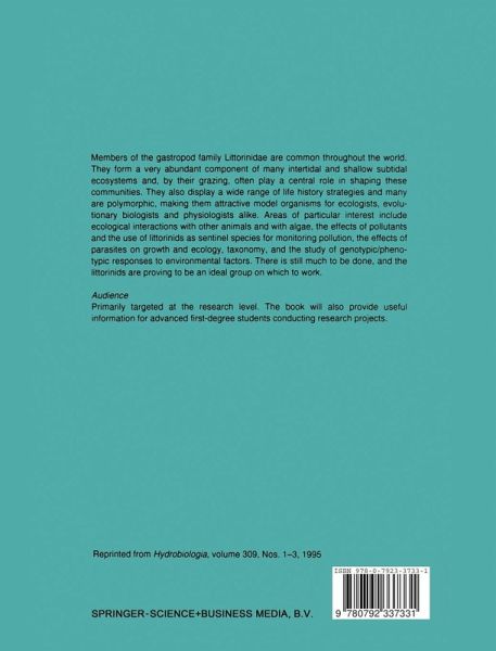 Members of the gastropod family Littorinidae are common throughout the world. They form a very abundant component of many intertidal and shallow subtidal ecosystems and, by their grazing, often play a central role in shaping these communities. They also display a wide range of life history strategies and many are polymorphic, making them attractive model organisms for ecologists, evolutionary biologists and physiologists alike. Areas of particular interest include ecological interactions with other animals and with algae, the effects of pollutants and the use of littorinids as sentinel species…mehr