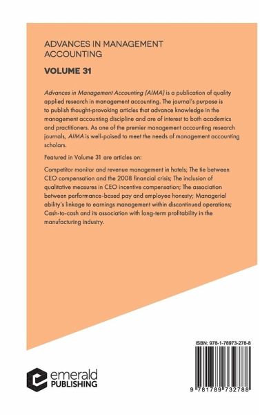 This volume of Advances in Management Accounting explores a variety of current issues through rigorous academic research. Topics include the link between CEO compensation and the 2008 financial crisis, the association between performance-based pay and employee honesty, and more.
