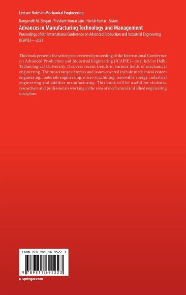 Proceedings of 6th International Conference on Advanced Production and Industrial Engineering (ICAPIE)-2021 Herausgegeben:Singari, Ranganath M.; Jain, Prashant Kumar; Kumar, Harish