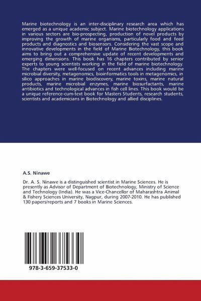 Marine biotechnology is an inter-disciplinary research area which has emerged as a unique academic subject. Marine biotechnology applications in various sectors are bio-prospecting, production of novel products by improving the growth of marine organisms, particularly food and feed products and diagnostics and biosensors. Considering the vast scope and innovative developments in the field of Marine Biotechnology, this book aims to bring out a comprehensive update of recent developments and emerging dimensions. This book has 16 chapters contributed by senior experts to young scientists working in the field of marine biotechnology. The chapters were well-focused on recent advances including marine microbial diversity, metagenomics, bioinformatics tools in metagenomics, in silico approaches in marine biodiscovery, marine toxins, marine natural products, marine microbial enzymes, marine biosurfactants, marine antibiotics and technological advances in fish cell lines. This book would be a unique reference-cum-text book for Masters Students, research students, scientists and academicians in Biotechnology and allied disciplines.