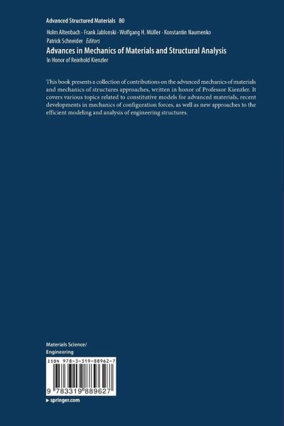 This book presents a collection of contributions on the advanced mechanics of materials and mechanics of structures approaches, written in honor of Professor Kienzler. It covers various topics related to constitutive models for advanced materials, recent developments in mechanics of configuration forces, as well as new approaches to the efficient modeling and analysis of engineering structures.