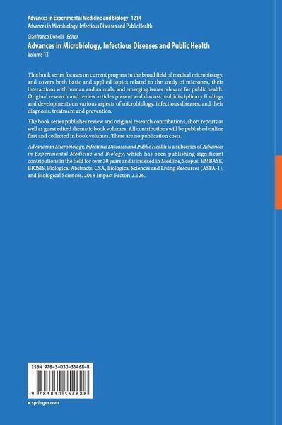 Advances in Microbiology, Infectious Diseases and Public Health is a subseries of Advances in Experimental Medicine and Biology, which has been publishing significant contributions in the field for over 30 years and is indexed in Medline, Scopus, EMBASE, BIOSIS,Biological Abstracts, CSA, Biological Sciences and Living Resources (ASFA-1), and Biological Sciences. 2018 Impact Factor: 2.126.