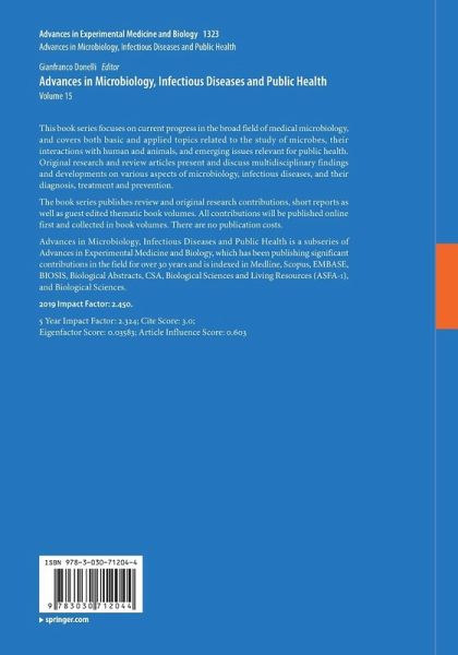 Advances in Microbiology, Infectious Diseases and Public Health is a subseries of Advances in Experimental Medicine and Biology, which has been publishing significant contributions in the field for over 30 years and is indexed in Medline, Scopus,EMBASE, BIOSIS, BiologicalAbstracts, CSA, Biological Sciences and Living Resources (ASFA-1), and Biological Sciences. 2019 Impact Factor: 2.450.