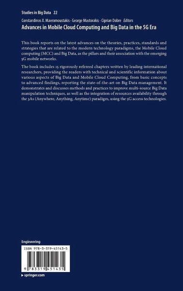 This book reports on the latest advances on the theories, practices, standards and strategies that are related to the modern technology paradigms, the Mobile Cloud computing (MCC) and Big Data, as the pillars and their association with the emerging 5G mobile networks.