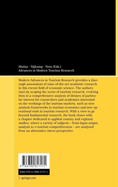 Modern Advances in Tourism Research provides a thorough assessment of state-of-the-art academic research in this recent field of economic science. The authors start by scoping the scene of tourism research, evolving then to a comprehensive analysis of themes of particular interest for researchers and academics interested on the workings of the tourism markets, such as new analysis frameworks in tourism economics and new operational tools in tourism research. With a view to go beyond fundamental research, the book closes with a chapter dedicated to applied country and regional studies, where a variety of subjects - from input-output analysis to e-tourism competitiveness - are analysed from an alternative micro-perspective.