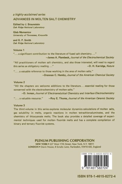 The first chapter of this volume deals with computer simulation of molten salt behavior by molecular dynamics calculations. The next four chapters are reviews of experimental work: Chapter 2 deals with the solubility of nonre active gases in molten salts, Chapter 3 with various types of organic reactions in molten tetrachloroaluminates, Chapter 4 with techniques for the study of molten fluorides, and Chapter 5 with the physical and chemical properties of thiocyanate melts. The last chapter is a collection of phase diagrams for binary and ternary fluoride systems. J. B., G. M., G. P. S. v CONTENTS Chapter 1 MOLECULAR DYNAMICS CALCULATIONS ON MOLTEN IONIC SALTS L. V. Woodcock 1. Introduction. . 4 2. Intermolecular Forces in Molten Salts 4 2.1. True and Effective Pair Potentials 2.2. Semiempirical Models 6 3. Computational Techniques 13 3.1. Molecular Dynamics Simulation 13 3.2. The Monte Carlo Method 15 3.3. Electrostatic Summations . . 18 4. Calculation of Physical Properties 23 4.1. Equilibrium Properties . 23 4.2. Transport Coefficients 27 4.3. Spectroscopic Properties 32 5. Applications. . . . . . . . 35 5.1. Studies of Interionic Forces. 35 5.2. Microstructure and Mechanisms 40 5.3. Interpretation of Experimental Observables 50 5.4. Reappraisal of Molten Salt Theories . 64 70 6. Conclusions 7. References. 72 vii Contents viii Chapter 2 GAS SOLUBILITY IN MOLTEN SALTS P. Field 1. Introduction 75 2. Experimental Techniques 78 3. Solution Thermodynamics.