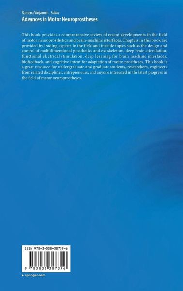 This book provides a comprehensive review of recent developments in the field of motor neuroprosthetics and brain-machine interfaces. Chapters in this book are provided by leading experts in the field and include topics such as the design and control of multidimensional prosthetics and exoskeletons, deep brain stimulation, functional electrical stimulation, deep learning for brain machine interfaces, biofeedback, and cognitive intent for adaptation of motor prostheses. This book is a great resource for undergraduate and graduate students, researchers, engineers from related disciplines, entrepreneurs, and anyone interested in the latest progress in the field of motor neuroprostheses.