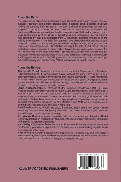 The immunology of mucosal surfaces is one of the most exciting and relevant areas of medical veterinary and dental research since it applies basic research to tissues in volved in everyday defence against microbes and against environmental and food antigens. This book is based on the contributions presented at the International Con gress of Mucosal Immunology, held in London in July 1989 and organised by the Mu cosal Immunology Affinity Group of the British Society for Immunology. The meet ing was attended by over 500 delegates from 27 countries, including virtually all of the leading investigators in the field. The contents give comprehensive and up-to date information on such topics as antigen presentation and processing in the gut, mucosal vaccines in man and animals, HIV infection in the gut, the role of yo T cells in the gut epithelium, recent advances in inflammatory bowel disease and coeliac dis ease, the role of cytokines in the regulation of the IgA response, mucosal mast cells and cell migration. The contributions reflect the rapid pace of research in mucosal immunology, and the great strides which are taking place in the understanding of the immunology, molecular biology and biochemistry of host response at mucosal sur faces.