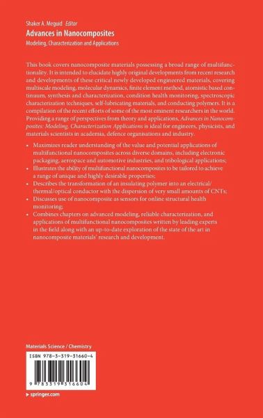 This book introduces nanocomposite materials possessing a broad range of multifunctionality. It elucidates novel and highly original developments from recent research and development of these critical, new engineered materials. The collection examines multiscale modeling, molecular dynamics, atomistic based continuum, synthesis and characterization, condition health monitoring, spectroscopic characterization techniques, self-lubricating materials, and conducting polymers. The volume features the latest efforts of some of the most eminent researchers in the world. Providing a range of perspectives from the laboratory and the field, Advances in Nanocomposites: Modeling and Characterization is ideal for engineers, physicists, and materials scientists in academia and industry.