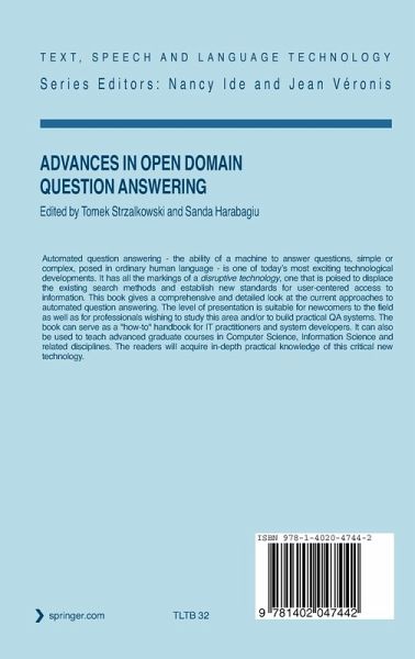 Automated question answering - the ability of a machine to answer questions, simple or complex, posed in ordinary human language - is one of today's most exciting technological developments. It has all the markings of a disruptive technology, one that is poised to displace the existing search methods and establish new standards for user-centered access to information. This book gives a comprehensive and detailed look at the current approaches to automated question answering. The level of presentation is suitable for newcomers to the field as well as for professionals wishing to study this area and/or to build practical QA systems. The book can serve as a "how-to" handbook for IT practitioners and system developers. It can also be used to teach advanced graduate courses in Computer Science, Information Science and related disciplines. The readers will acquire in-depth practical knowledge of this critical new technology.