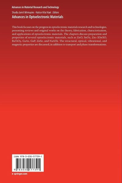This book focuses on the progress in optoelectronic materials research and technologies, presenting reviews and original works on the theory, fabrication, characterization, and applications of optoelectronic materials. The chapters discuss preparation and properties of several optoelectronic materials, such as ZnO, SnO2, Zn1-XSnXO, BaTiO3, GaAs, GaP, ZnSe, and NaAlSi. The structural, optical, vibrational, and magnetic properties are discussed, in addition to transport and phase transformations.