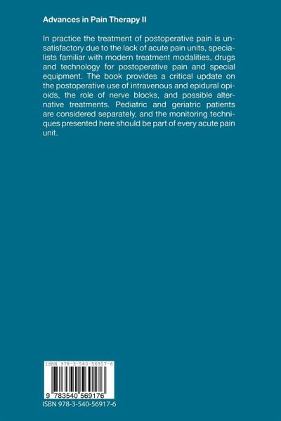 E.MARTIN Acute pain services are now established worldwide and guidelines have been drawn for the management of acute pain resulting from surgical or medical procedures and trauma. However, the treatment of pain after surgery is still inadequate and no progress has been made in recent years in several coun tries, including Germany. There are still innumerable patients who find the is also no early postoperative period to be an unpleasant experience. There doubt that pain plays a role in the pathogenesis of postoperative complica tions that could be avoided with effective pain management. However, concern about side effects and inadequate knowledge of the pharmacokinet ics and -dynamics of drugs is still putting constraints on treatment. An acute pain service should be responsible for adequately treating pain, training medical and nursing staff, and evaluating new and existing methods of treatment. As anesthesiologists deal with pain in the operating theater, it is not surprising that they claim a leading role for themselves in acute pain services choosing from the various postoperative pain treatment options.