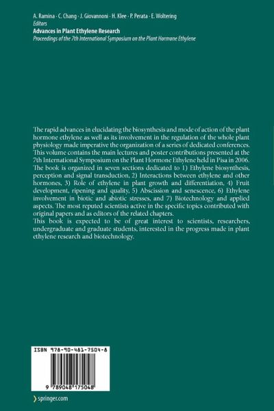 This volume contains the main lectures and poster contributions presented at the 7th International Symposium on the Plant Hormone Ethylene held in Pisa (Italy), June 18-22, 2006. This international scientific event was organized by the University of Padova and the Scuola Superiore Sant'Anna of Pisa and took place on the premises of the Scuola Superiore Sant'Anna. We would like to thank the Ministry of Agriculture and Forestry, the Ministry of University and Scientific Research of Italy, the University of Padova and the Scuola Superiore Sant'Anna of Pisa for partially funding this symposium. Appreciation is also extended to a number of local insti- tions that generously contributed to the success of this important event. We are indebted to the members of the scientific committee. A special appreciation goes to the local organizing committee headed by Prof. Giovanni Serra. Finally, we gratefully acknowledge Dr. Alessandro Botton for handling all the editorial aspects concerning thepublication of this volume. The Editorial Board