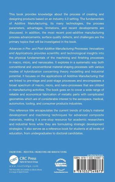 This book provides knowledge about creating and designing products based on an Industry 4.0 setting. Discussing the fundamentals of Additive Manufacturing, technologies, process parameters, advantages, limitations, recent developments, recent post-additive manufacturing process advancements, surface quality defects, and challenges.