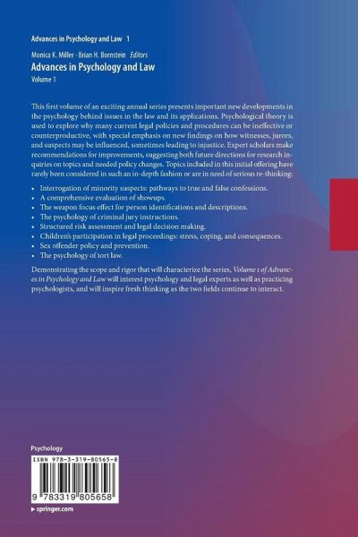 This first volume of an exciting annual series presents important new developments in the psychology behind issues in the law and its applications. Psychological theory is used to explore why many current legal policies and procedures can be ineffective or counterproductive, with special emphasis on new findings on how witnesses, jurors, and suspects may be influenced, sometimes leading to injustice. Expert scholars make recommendations for improvements, suggesting both future directions for research inquiries on topics and needed policy changes. Topics included in this initial offering have rarely been considered in such an in-depth fashion or are in need of serious re-thinking:Interrogation of minority suspects: pathways to true and false confessions.