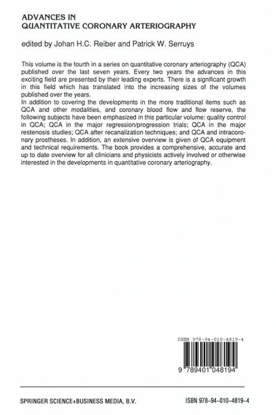 In this fourth book in the series on quantitative coronary arteriography (QCA) with the earlier three volumes published in 1986, 1988 and 1991, the latest developments in this exciting field are covered. Both the methodolog ical and clinical application aspects of these advances are presented in a comprehensive manner in a total of 37 chapters by world renowned experts. The book is subdivided into a total of eight parts, beginning with the more methodological issues, such as QCA and other modalities (3 chapters), cine film versus digital arteriography (3 chapters), quality control in QCA (4 chapters), and coronary blood flow and flow reserve (3 chapters). Since QCA has been well established as the technique for the assessment of regression and progression in atherosclerotic disease, and of restenosis after recanaliz ation procedures, major clinical trials in both groups are described extensively by their principal investigators in a total of 11 chapters. In addition, the QCA results after the application of various recanalization techniques are presented in another eight chapters. In the last part the experiences with various intracoronary prostheses with the emphasis on QCA are discussed in five chapters. This large increase in application oriented chapters means that QCA is well alive and gaining momentum. Although the accuracy and precision of the analytical methods steadily improve with the increasing complexity of the algorithms, there is still always the human factor involved in these processes in terms of frame selection, segment definition, etc.