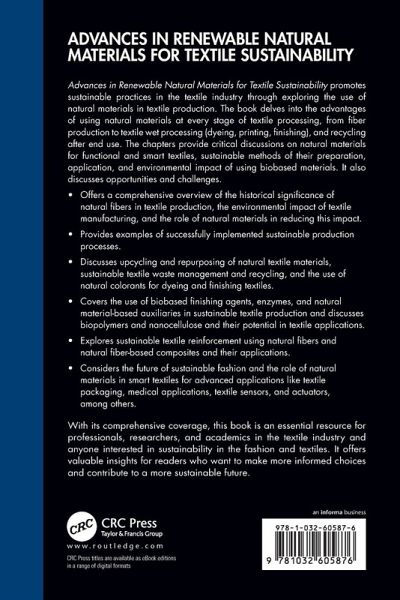 With its comprehensive coverage, this book is an essential resource for professionals, researchers, and academics in the textile industry and anyone interested in sustainability in the fashionand textiles. It offers valuable insights for readers who want to make more informed choices and contribute to a more sustainable future.