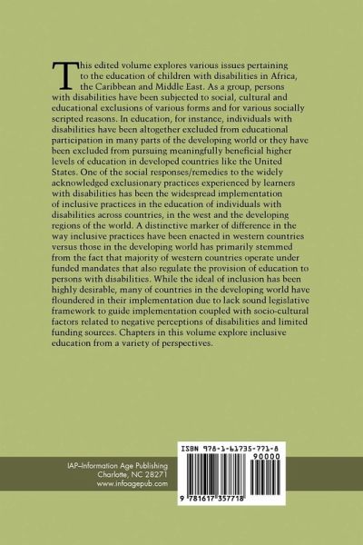 This edited volume explores various issues pertaining to the education of children with disabilities in Africa, the Caribbean and Middle East. As a group, persons with disabilities have been subjected to social, cultural and educational exclusions of various forms and for various socially-scripted reasons. In education, for instance, individuals with disabilities have been altogether excluded from educational participation in many parts of the developing world or they have been excluded from pursuing meaningfully beneficial higher levels of education in developed countries like the United States. One of the social responses/remedies to the widely-acknowledged exclusionary practices experienced by learners with disabilities has been the widespread implementation of inclusive practices in the education of individuals with disabilities across countries, in the west and the developing regions of the world. A distinctive marker of difference in the way inclusive practices have been enacted in western countries versus those in the developing world has primarily stemmed from the fact that majority of western countries operate under funded mandates that also regulate the provision of education to persons with disabilities. While the ideal of inclusion has been highly desirable, many of countries in the developing world have floundered in their implementation due to lack sound legislative framework to guide implementation coupled with socio-cultural factors related to negative perceptions of disabilities and limited funding sources. Chapters in this volume explore inclusive education from a variety of perspectives.