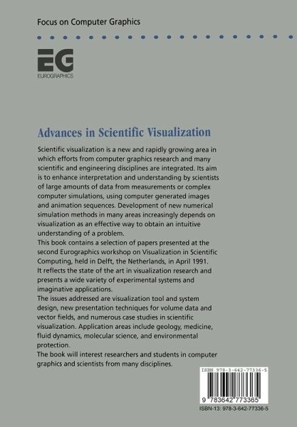 Scientific visualization is a new and rapidly growing areain which efforts from computer graphics research and manyscientific and engineering disciplines are integrated. Itsaim is to enhance interpretation and understanding byscientists of large amounts of data from measurements orcomplex computer simulations, using computer generatedimages and animation sequences. It exploits the power ofhuman visual perception to identify trends and structures,and recognize shapes and patterns. Development of newnumerical simulation methods in many areas increasinglydepends on visualization as an effective way to obtain anintuitive understanding of a problem.This book contains a selection of papers presented at thesecond Eurographics workshop on Visualization in ScientificComputing, held in Delft, the Netherlands, in April 1991.Theissues addressed are visualization tool and systemdesign, new presentation techniques for volume data andvector fields, and numerous case studies in scientificvisualization. Application areas include geology, medicine,fluid dynamics, molecular science, and environmentalprotection.The book will interest researchers and students in computergraphics and scientists from many disciplines interested inrecent results in visual data analysis and presentation. Itreflects the state of the art in visualization researchand shows a wide variety of experimental systems andimaginative applications.