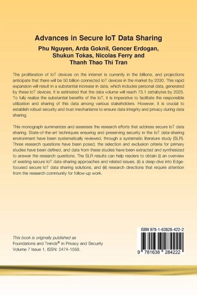 The proliferation of IoT devices on the internet is currently in the billions, and projections anticipate that there will be 50 billion connected IoT devices in the market by 2030. This rapid expansion will result in a substantial increase in data, which includes personal data, generated by these IoT devices. It is estimated that the data volume will reach 73.1 zettabytes by 2025. To fully realize the substantial benefits of the IoT, it is imperative to facilitate the responsible utilization and sharing of this data among various stakeholders. However, it is crucial to establish robust security and trust mechanisms to ensure data integrity and privacy during data sharing. This monograph summarizes and assesses the research efforts that address secure IoT data sharing. State-of-the-art techniques ensuring and preserving security in the IoT data-sharing environment have been systematically reviewed, through a systematic literature study (SLR). Three research questions have been posed, the selection and exclusion criteria for primary studies have been defined, and data from these studies have been extracted and synthesized to answer the research questions. The SLR results can help readers to obtain (i) an overview of existing secure IoT data-sharing approaches and related issues, (ii) a deep-dive into Edge-focused secure IoT data sharing solutions, and (iii) research directions that require attention from the research community for follow-up work.