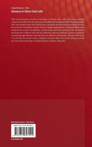 This book provides a review of all types of silicon solar cells. The scope includes monocrocrystalline Si solar cells, polycrystalline and amorphous thin-film silicon solar cells, and tandem solar cells. Production, treatment and development of these devices are reviewed. Limitations of these devices, design optimization, testing and fabrication methods are covered. In addition, current status and future prospects for the further development of silicon solar cells are addressed. Special emphasis is given to methods of attaining high efficiency and thereby cost-effective solar power. The aim of the book is to provide the reader with a complete overview about the recent advances in the structure and technology of all generations of silicon solar cells.